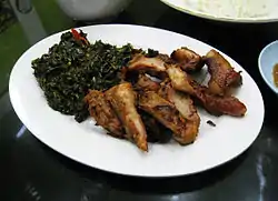 Se'i or sei is an Indonesian smoked meat from Kupang, Timor island, East Nusa Tenggara, Indonesia.[1] Se'i may be derived from a variety of meats, with pork (se'i babi), beef (se'i sapi) or game animals such as venison (se'i rusa) as common offerings. Today, the most popular se'i meat is pork.[2]