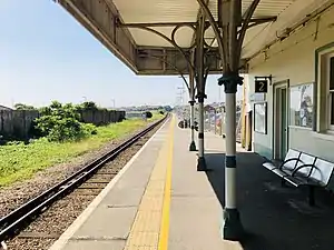 Seaford railway station is in Seaford, East Sussex, England. It is the terminus of the Seaford branch line of the East Coastway line, 58 miles 77 chains (94.9 km) measured from London Bridge.[1] The line to the station has been reduced to a single track and only one platform remains in use (previously two), though it is still numbered platform 2. Platform 1 is still visible but the track has been removed.