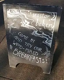 Seastar's menu included breads (challah, rosemary cornbread,[4] rye, sourdough), cookies, English muffins,[5] pastries, buckwheat scones, and toast.[6] Toast toppings included fruit, coconut-honey butter, and honey-nut butter, as well as coppa, pickles, and fried egg.[7]