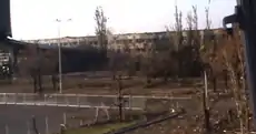 Ukrainian and separatist forces continued to exchange artillery fire. Amidst the continuing fire, a school and bus stop in the Kyivskiy district of Donetsk city, which neighbours the airport, were struck by shells on 1 October.[28][29] Ten civilians were killed, though no schoolchildren were harmed. According to Joanne Mariner of Amnesty International, it was "impossible to tell" who was responsible for the incident. She also said, however, that "residential areas have been hit by Ukrainian forces firing from the airport", and that DPR forces "also bear responsibility as they have been stationing artillery in residential areas and firing from there, in clear contradiction of the laws of war".[28] Concurrently, DPR forces supported by tanks began to advance into the airport, and seized several hangars, a fuel storage area, and outbuildings. They used these buildings as artillery emplacements, and began to bombard Ukrainian positions from them. DPR forces continued to move forward, and captured the control centre, police station, and hotel, but could not advance further.[25] Mutual shelling continued on 2 October.[30][31] The situation, according to the Ukrainian government, was "difficult".[32]