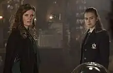 Later on at Roni's, the sisters, despite no longer having any magic because of the new curse, believe that they have something better. As Regina points to a stained glass sign with their cursed names on it, she offered to put the sign back up as a way to bond, but Zelena smashed the sign because that's where she hid the amulet. This gives the sisters the chance to save Lucy but Victoria shows up with a gun pointed directly at Regina and is forced to give up the amulet. When Victoria turns over the amulet to Gothel in order to save Lucy, Gothel turned to Anastasia, who then used her magic to make it useful. Unfortunately, the amulet also revealed the person who has to be sacrificed in order to make it happen, and Ivy is the chosen victim. As Gothel prepares to take Ivy's life, even as she blames her mother for how she treated her, Victoria suddenly sacrificed herself by pushing Ivy out and she sacrifices herself. Victoria's action also saved Lucy as she emerges from her coma. As Rogers and Weaver arrives they see Ivy with her deceased mother.