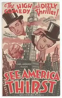 See America Thirst is a 1930 American pre-Code comedy film produced and distributed by Universal Pictures and directed by William James Craft. Silent comics Harry Langdon and Slim Summerville star along with Bessie Love. Though released late in 1930, it nevertheless had a silent version.[2][3]