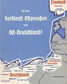 The Seedienst Ostpreußen or Sea Service East Prussia was a ferry connection between the German provinces of Pomerania and, later, Schleswig-Holstein and the German exclave of East Prussia from 1920 to 1939.
