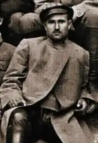 Semen Karetnyk was born into extreme poverty, growing up a poor peasant in the small southern Ukrainian town of Huliaipole. He worked as a hostler until the outbreak of World War I, upon which he was drafted into military service and worked his way through the ranks until he became an ensign. By the time of the Russian Revolution, Karetnyk had gained much military experience, which he utilized upon his return to Ukraine, when he became a leading partisan of the Makhnovshchina.[1] Karetnyk's strong anarchist convictions brought him into the favor of the local revolutionary leader Nestor Makhno,[2] with Karetnyk going on to become the second-in-command of the Revolutionary Insurgent Army of Ukraine.[1]