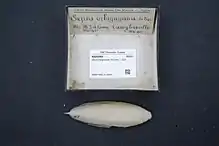 The specific name of Sepia orbignyana honours the French malacologist Alcide d'Orbigny.[6] being the editor of the Annales des Sciences Naturelles at the time André Étienne d'Audebert de Férussac published his description of the species, in 1826, from a type specimen collected at La Rochelle.[4] The type is held at the Museum National d'Histoire Naturelle in Paris.[7]