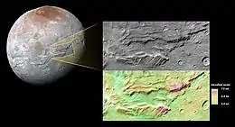 - ↑ Cofield, Calla (October 20, 2016). "Look Out Below! Landslides Spotted on Pluto's Moon Charon". Space.com. Retrieved 9 April 2020.