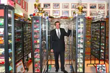 His large scale model car collection, with 7,000 model cars in 2003[1] and 12,000 model cars in 2009, was recognized by Guinness World Records.[2] He and his wife Mariana also produced their own line of model American cars.[3][4] In 2014,Sergio Goldvarg was inducted to the Model Car Hall of Fame[5] in Las Vegas, for preserving the Legacy, for honoring pioneers of the model vehicle industry for their efforts to promote and enhance the hobby. From designers to entrepreneurs. www.modelcarhall.com. In 2018,Goldvarg Collection, the scale model car brand created by Sergio Goldvarg, was inducted to the Modelcar Hall of Fame for the New Brand of the Year. www.modelcarhall.com