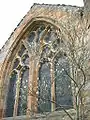 The church consists of the complete eastern limb and the two transepts of a cruciform church, the crossing-tower as high as it was built (the completion of the spire was precluded by the Reformation), and the dubious foundations of the nave, which was not built. The walls of the choir and chancel were built by 1478, and roofed by 1508. The transepts were erected sometime between 1513 and 1588. As such the eastern limb stood without them for at least 35 years. The church was raised to collegiate status in 1492. Contained within are two effigies: one male and one female, dating from the fifteenth century. The female effigy, badly defaced, is possibly of earlier origin.
