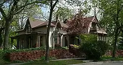 Seven Gables, also known as the Terrell Thomas House, is a historic house at 215 6th Street in Baraboo, Wisconsin. The house was built in 1860 for Terrell Thomas, a local banker and businessman. The house has a Gothic Revival design described as Downingesque, a term used for smaller Gothic houses inspired by architect Andrew Jackson Downing's design philosophy. Its design features an entrance pavilion topped by a gable roof with decorative bargeboard on its eaves, a side entrance on the west facade with a matching gable, a front-facing verandah with wooden brackets and detailing, and several dormers interrupting the main hip roof. John Durward, a Roman Catholic priest and the son of Durward's Glen founder Bernard Durward, bought the house in 1911; after his death in 1918, local district attorney and county judge Henry Jay Bohn lived in the house until 1929.[2]