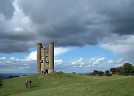 There is a prominent folly called Broadway Tower on the ridgeline about 1200 metres north of the summit of Seven Wells Hill.[2]