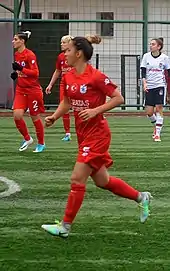 In August 2018, she transferred to the Izmir-based rival Konak Belediyespor.[1] She took part in three matches of the 2017–18 UEFA Women's Champions League qualifying round.[9][10][11]