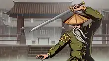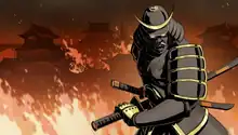 Shogun wields a pair of a katana and a wakizashi blade - the pair of blades is called Daisho. His special ability is that he can call his bodyguards, who will come from either side of the screen at random intervals, one at a time, and attempt to strike Shadow once before "flying" upwards. The summoned bodyguards cannot be attacked. Their attacks cannot be blocked, but can be avoided. Defeating him will reward the player with the last seal, Jade Seal, as well as unlocks Gates of Shadows. If the player defeats him once more during eclipse, they will get his weapon as a reward.