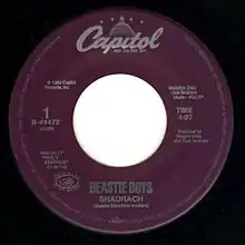 "Shadrach" is a song by American hip hop group Beastie Boys from their second studio album Paul's Boutique (1989). It was released as the album's second single on October 30, 1989, as a 7-inch vinyl backed with the non-album track "And What You Give Is What You Get". Both songs appear on the EP An Exciting Evening at Home with Shadrach, Meshach and Abednego (1989).