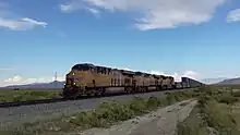 The Shafter Subdivision is a rail line owned and operated by the Union Pacific Railroad in the U.S. states of Nevada and Utah. The line begins as a continuation of the Elko Subdivision at the Elko freight yards, and travels east to the junction with the Lynndyl Subdivision of the former Los Angeles and Salt Lake Railroad, adjacent to the Kennecott Smokestack.[1] The line was formerly part of the Western Pacific Railroad.[2] The entire subdivision is part of the Central Corridor; the portion west of Alazon (a switchover near Wells, Nevada) is also part of the Overland Route. Shafter is the name of the rail siding at the junction between this line and the Nevada Northern Railway.
