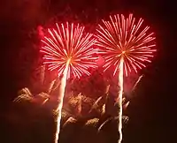 Shanghai International Music Fireworks Festival started in 2000 and is held annually on National Day. The fireworks are fired from 7 barges and the other side of a lake in ShangHai Century Park.[1] All fireworks are produced in China and they are designed by invited companies/designers.