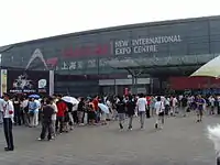 The Shanghai New International Expo Center is an exhibition center in Pudong, Shanghai. It hosts many exhibitions, including the Shanghai Motor Show. It has also hosted the 2002 Tennis Masters Cup, where one of the halls was temporarily converted into a tennis court. With more than 100 exhibitions per year and a turnover rate of 27 (2015), SNIEC is one of the world's most successful exhibition venues.