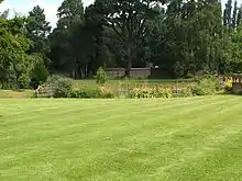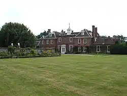A feature of the house today is its grand approach. After climbing a short hill from the village of Newnham, a tree-lined avenue leads to a pair of heavy wrought iron gates designed in 1882 and supported by brick gate posts.[6] A brick 18th century gazebo (or possibly a faux gatehouse) watches over the entrance together with two stone bulls. A gravel stone driveway leads to the main, house flanked on the south by a walled terrace from the gazebo.