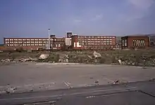At around the same time Littlewoods acquired the Lily mills, it purchased the adjacent Rutland Mill with the intention of continuing a bridge connection from the other mills and converting it into an automated storage facility. However, it was decided this would cost more money than simply replacing the mill with a purpose made building. Nearby residents were informed of the demolition of Rutland mill and its replacement with a new 'one storey' warehouse, which was duly approved. Demolition took place in 1993.[7] In reality the new building, which opened in 1997, although is technically 'one storey', it is almost as tall as its predecessor. The local authority and residents were displeased and have since revamped planning permission criteria for the area.