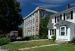 Shawsheen Village Historic District is a historic district in northern Andover, Massachusetts. Shawsheen Village was completed in the early 1920s as a planned corporate community. Conceived by William Madison Wood of the American Woolen Company, the village was designed a team of architects including Adden & Parker, Clifford Allbright and Ripley & LeBoutillier of Boston and James E. Allen of Lawrence. John Franklin, a civil engineer for the American Woolen Company was responsible for designing the village, under the direction of Wood. Buildings from the original Frye Village were also incorporated into the design which included a railroad station, shops, apartment buildings, factories, parks and numerous single-family dwellings.[2] The village was located just up the road from the Company's main factories in nearby Lawrence.