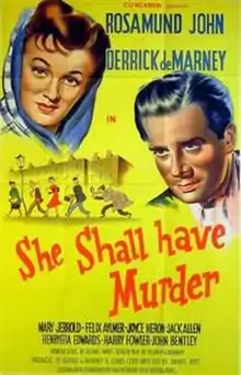 She Shall Have Murder is a 1950 British drama film directed by Daniel Birt and starring Rosamund John, Derrick De Marney and Felix Aylmer.[1] The screenplay concerns a law office clerk who becomes a detective.