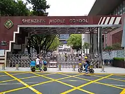 Shenzhen Middle School (Chinese: 深圳中学), commonly referred as SMS or SZMS, is a high school located in Luohu District, Shenzhen, Guangdong, China. Founded in 1947, it was made the only provincial key high school (magnet school) in Shenzhen in 1983.[1] In November 1993, it became one of the first Class-One Schools of Guangdong Province. In 1998, Shenzhen Middle School merged with Honghu Middle School, and the latter's campus is now Shenzhen Middle School's junior school. In total, its junior and senior campuses cover an area of 107,602 square metres (1,158,220 sq ft). The student-teacher ratio is about 10:1. Zhu Huawei (朱华伟, Zhū Huáwěi)[2] is the current principal.
