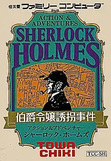Sherlock Holmes: Hakushaku Reijō Yūkai Jiken (シャーロック・ホームズ 伯爵令嬢誘拐事件, lit. "Sherlock Holmes: The Kidnapping of the Earl's Daughter")[2] is an action video game that was released exclusively in Japan for the Family Computer. An unofficial English translation patch for the game was released on December 9, 2018.[3]