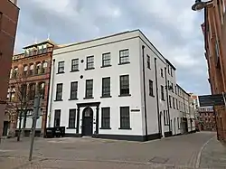 The building was owned by the Sherwin family until the death of John Sherwin on 15 March 1800 it passed to his nephew John Longdon. By 1807 it was owned by Mr. Bigsby, attorney-at-law, who made substantial alterations including stuccoing the exterior facade. A north east wing was added before 1820.[4] The gardens of the property were gradually sold off for building of other houses and in 1884 Pilcher gate was widened which resulted in the loss of the railings and front yard or 65 square yards (54 m2) for a price of £780[5] (equivalent to £86,500 in 2021).[6]. Another wing was added in the rear courtyard around 1886 when the building was converted into a lace warehouse.