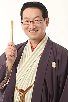 Shunpūtei Shōta (春風亭 昇太, born December 9, 1959)[1] is a Japanese rakugo comedian best known for performing on the Shōten comedy show on Nippon TV. He is known as a master of the Japanese comic art of rakugo, in which a single performer or storyteller appears on stage and tells comedic stories to the audience.