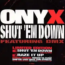 "Shut 'Em Down" is a song by American hip hop group Onyx. It was released on February 3, 1998, by Def Jam and JMJ Records as the second single from Onyx's third album, Shut 'Em Down. The song featured labelmate DMX.