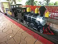 Siam Park City (Thai: สวนสยาม; RTGS: Suan Sayam) is an amusement and water park in the Khan Na Yao district of Bangkok, Thailand. It opened in November 1980. For the transport of visitors a miniature railway in the way of a light railway was installed. The line was built in a broad circuit around the area. Due to old maps, an old photograph and some still existing tracks (as seen in September 2016), it is certain that the railroad line left the inner terrain of the park at least in the southbound section behind and circled the waterpark installations. In a northward direction the still existing tracks end nowadays in front of the Dinotopia attraction. The line was a single-way track with, had a gauge of 2 ft, several sidings and served some stop stations. The storage sidings for the units, hauled by a diesel locomotive, were behind the present-day attraction Log Flume.