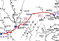 The Sichuan River or Chuan Jiang (Chinese: 川江; Sichuanese Pinyin: Cuan1jiang1; pinyin: Chuānjiāng), is the upper portion of Yangtze River from Yibin to Yichang. It is named because the river flows through Sichuan & Chongqing, which was part of Sichuan, in this stretch. The total length of Sichuan River is 1,040km. Major cities along Sichuan River include Yibin, Luzhou, Chongqing, Fuling, Wanzhou and Yichang.