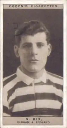 Sidney "Sid" Rix (third ¼ 1898[4] – death unknown) was an English professional rugby league footballer who played in the 1910s, 1920s and 1930s. He played at representative level for Great Britain and England, and at club level for Oldham (Heritage № 179), as a wing, or centre, i.e. number 2 or 5, or, 3 or 4.[1]