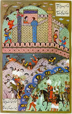 Székesfehérvár was a key fortification in the frontier area extending in the western foreground of Budin.[3] In 1543 the garrison numbered 6,000 troops.[3] On 22 August 1543 the Ottomans laid siege to the castle from three directions.[2] On September 2 the Ottomans started a general attack against the fortress, they captured the outer castle.[2] The next day the defenders in the inner castle surrendered to the Ottomans.[2] It was turned into a sanjak of the province of Budin.[2]