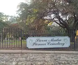 - ↑ "Sierra Madre Pioneer Cemetery • Portal". www.sierramadrepioneercemetery.org. Retrieved 29 September 2018.