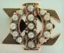 Its badge was the three Greek letters of its name, with the Phi superimposed on the two Sigmas. The Phi was set with fifteen pearls, or in some cases, with diamonds.