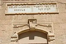 Inscription on the facade of the Edler von Lämel Schule (Lämel School) in Jerusalem