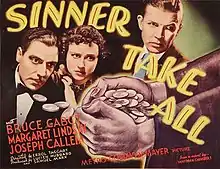 Sinner Take All is a 1936 American murder mystery film directed by Errol Taggart and starring Bruce Cabot, Margaret Lindsay and Joseph Calleia.[1]