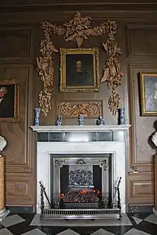 Sir John Brownlow, 1st Baronet, portrait at Belton House, surrounded by carving by Grinling Gibbons
