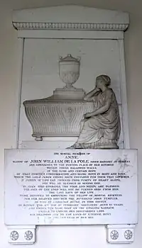 The mural monument to Lady Anne Pole (née Templer) (1758–1832), wife of Sir John de la Pole, in Shute Church is inscribed as follows: