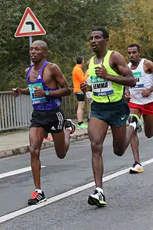 Sisay Lemma began his running career at the age of 17 and initially competed barefoot due to a lack of running shoes.[2]