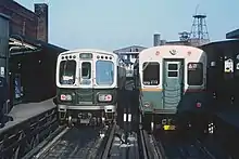 - ↑ The Lake Street Elevated and South Side Elevated (both part of the modern-day Green Line) both had a third track for unidirectional express service during rush hours, while the North Side main line (part of the modern-day Brown, Red, and Purple Lines) had a full four tracks for bidirectional local and express services, but these were the exceptions rather than the rule.[7]
