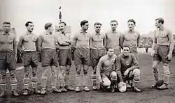 The first official match of the first Slovak Republic (1939–1945) was played in Bratislava against Germany on 27 August 1939, and ended in a 2–0 victory for Slovakia.[6] After the Second World War, the national football team was subsumed into the team of Czechoslovakia, and for over 50 years Slovakia played no matches as an independent country. During this period, they contributed several key players to the Czechoslovak team, including the majority of the team that won the UEFA Euro 1976 (8 of the 11 players who defeated West Germany in the final were Slovak).