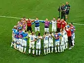 Slovakia participated in the FIFA World Cup for the first time as an independent nation after finishing in first in 2010 FIFA World Cup qualification – UEFA Group 3 ahead of Slovenia, Czech Republic, Northern Ireland and Poland. On 14 October 2009, they clinched qualification with a 1–0 away win against Poland.[7] On 24 June 2010, at the tournament proper, Slovakia finished second in the group stage after defeating reigning champions Italy in a game which ESPN dubbed "epic": the game saw three goals being scored after the 80th minute, two by Italy and one by Slovakia, as well as a disallowed goal by Italy flagged offside by "the tightest of decisions". The result led Slovakia to the knockout stage and eliminated Italy, who finished last in the group.[8] The result of this match meant that for the first time in World Cup history, both finalists from the previous tournament had been eliminated from the first round, champion Italy and runner-up France.[9][10]