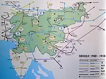The development of Slovenia's railway network is depicted with seven maps, each relating to a distinctive era. Historic boundary stones, engraved with the individual railway companies, bear witness in the display to each period. In their time, they marked the ownership of the land where the track was laid.