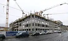 The project is the result of an international architectural competition and also takes into consideration the demands of individual Prague residents.[3] The urban design of Smíchov City - North and the plan for the SM 1 administrative complex were created by the studio A69.[4] The design is grounded in the principles of a traditional city based on high-quality public space in the form of streets, parks, and squares bordered by city blocks, and is lively, safe, and beneficially multifunctional. The project includes plans for transit and parking, trees in the streets and inner courtyards, and a lively parterre. The space is intended to be a true home that will connect work, housing, shopping, school, and rest in one location.[5] The neighborhood on the whole, which will connect fluidly with the surrounding buildings, is projected as a compact city space following a concept familiar in Western metropolises which allows the transit load to be reduced to a minimum.[6] Based on the recommendations of a jury, seven studios will work on the project's architecture: A69, Kuba & Pilař architekti, Haascookzemmrich STUDIO 2050, Chalupa architekti, Lábus – AA – Architektonický ateliér, D3A, and Projektil architekti.[1][7]