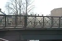 In 1964, the bridge was rebuilt according to the project of engineer E.E. Rosenfeld for laying heating pipes.[6] The bridge spans were covered with high metal beams, which led to the distortion of the historical appearance of the bridge and the violation of the architectural unity with the adjacent sections of the embankments.[7]