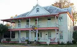 Smith-Nelson Hotel, and also known as the Nelson Hotel and to locals as The Painted Lady, is a historic hotel in Reidsville, Georgia, in Tattnall County. The address of the hotel is 118 South Main Street. It is a two-story building built in 1908 and is considered Folk Victorian in architectural style. It has a hipped roof with center gables and a wrap-around porch. Tongue-and-groove paneling is used throughout the inside. Each floor has a central hallway with two rooms on each side. A one-story kitchen ell was added in the 1950s.[2] As of February 2018, the building is for sale.