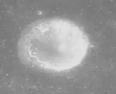 Smithson is a small lunar impact crater located in the northeast part of Mare Fecunditatis. It is a circular, cup-shaped feature with a slightly higher albedo than the surrounding, dark lunar mare. It was previously identified as Taruntius N before being renamed by the IAU. Taruntius itself lies to the west-northwest, in the northwestern part of the same mare.