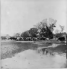 Cattle crossing the Smoky Hill River at Ellsworth (photo by A. Gardner, 1867).