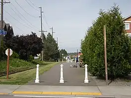 The Snohomish County Centennial Trail is a 30-mile-long (48 km) rail trail in Snohomish County, Washington, connecting the cities of Snohomish, Lake Stevens, and Arlington to Skagit County along the corridor of Washington State Route 9.[1] The trail, administered by Snohomish County Parks and Recreation, is on the former right-of-way of the Seattle, Lake Shore and Eastern Railway and comprises a 10-foot-wide (3.0 m) non-motorized trail and a 6-foot-wide (1.8 m) equestrian trail.[2] The first segment of the corridor was opened in 1989, the centennial of the statehood of Washington, and the final segment between Arlington and the Skagit County line was opened in 2013.[3]